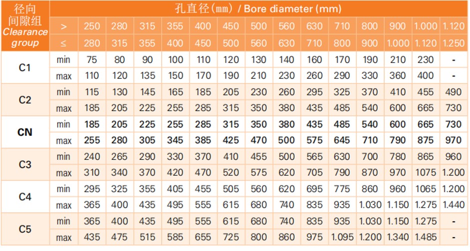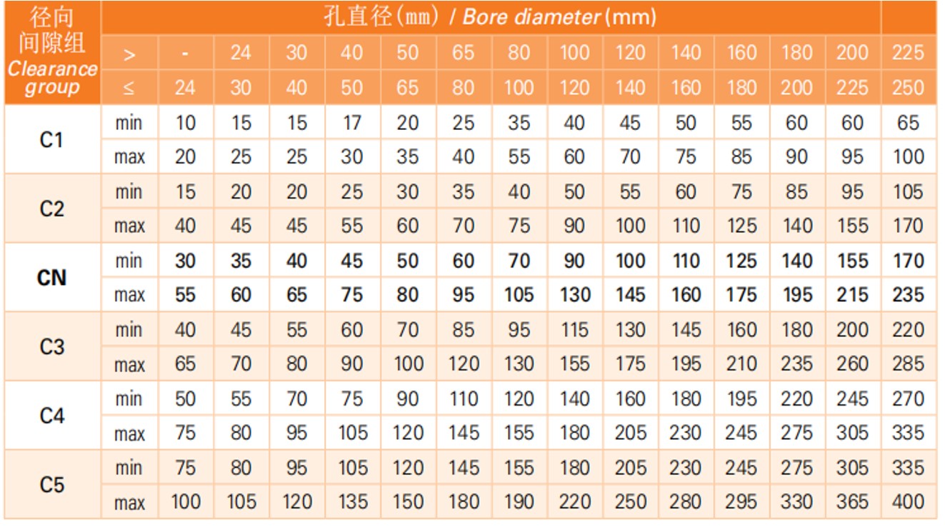 4、圆柱滚子轴承的内部间隙(锥孔)