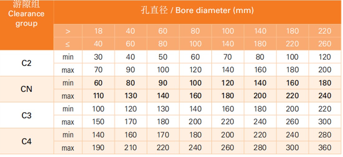 3、四点接触球轴承的径向内部游隙组
