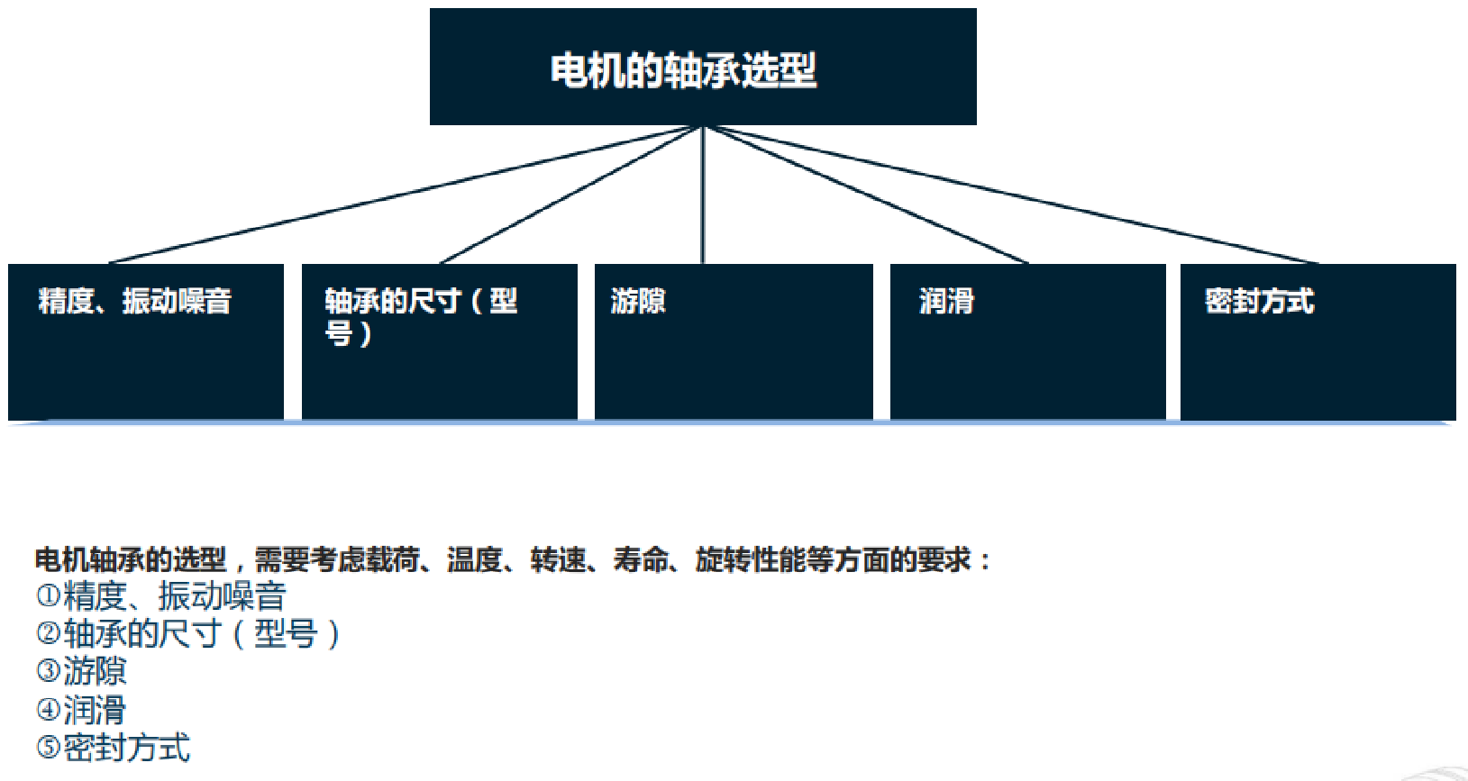 电机轴承的选择要考虑到轴承的精度、振动噪音、尺寸(型号)、游隙、润滑以及密封方式等